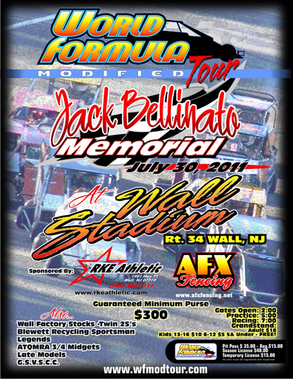 The World Formula Modified Tour is back in action this weekend at Wall Stadium for the Jack Bellinato Memorial as part of Family Fun Night at the Jersey Shore oval. Adult admission is only $8.00 and children 11 and under are free. For more info, go to the Wall Stadium website.