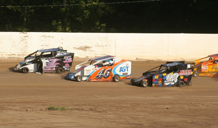 In the first feature, Carl Weinacker and Pairo led the thirteen car field to the green with Pairo taking the led from the outside and never giving it up for the entire distance. Starting from the rear, Kosch quickly sliced his way through the field and moved past points challenger Kenny Lund for third on lap four but his charge to the front would unravel on lap six after hard contact with the wall coming off of turn two and bringing out the red flag. Pairo maintained the lead over Carl Weinacker on the restart with Lund back in third. As the laps wound down, a bobble by Lund off of turn four allowed Jeff Weinacker to get inside of the 17 and take the third spot. At the checkers, it was Pairo, Carl & Jeff Weinacker, Lund and Ted Harris who also came from deep in the field to round out the top five.