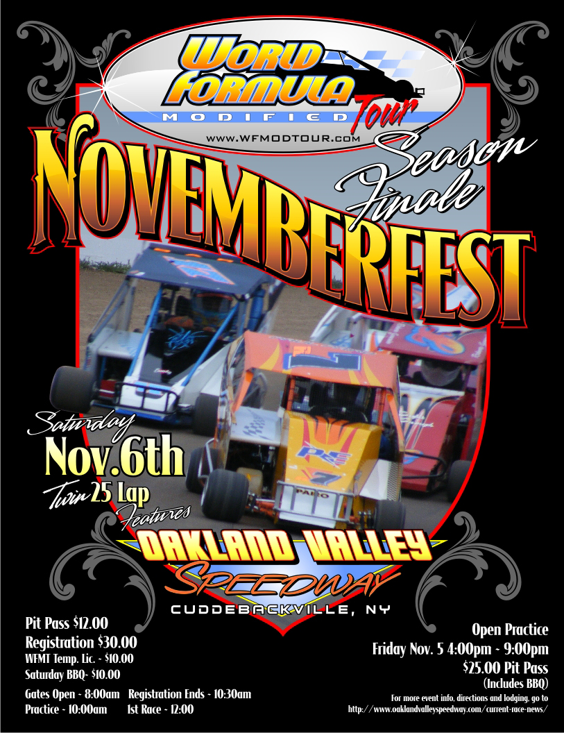 The Sept 25th race date at Wall Stadium that was lost due to the closure of the track has been moved to Oakland Valley Speedway on October 16th with no scheduled rain date.