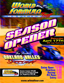 (4.2.12) Due to rain this past weekend, Oakland Valley Speedway was forced to cancel their pre-season practice, which has pushed thier race dates up one week along with the WFMT season opener originally scheduled for April 7th. We will be using our raindate of April 14th which will also be Oakland Valley's Season Opener as well. The open practice session at OVS originally scheduled for last weekend will now be held on Sat April 7th from 1-6.2012